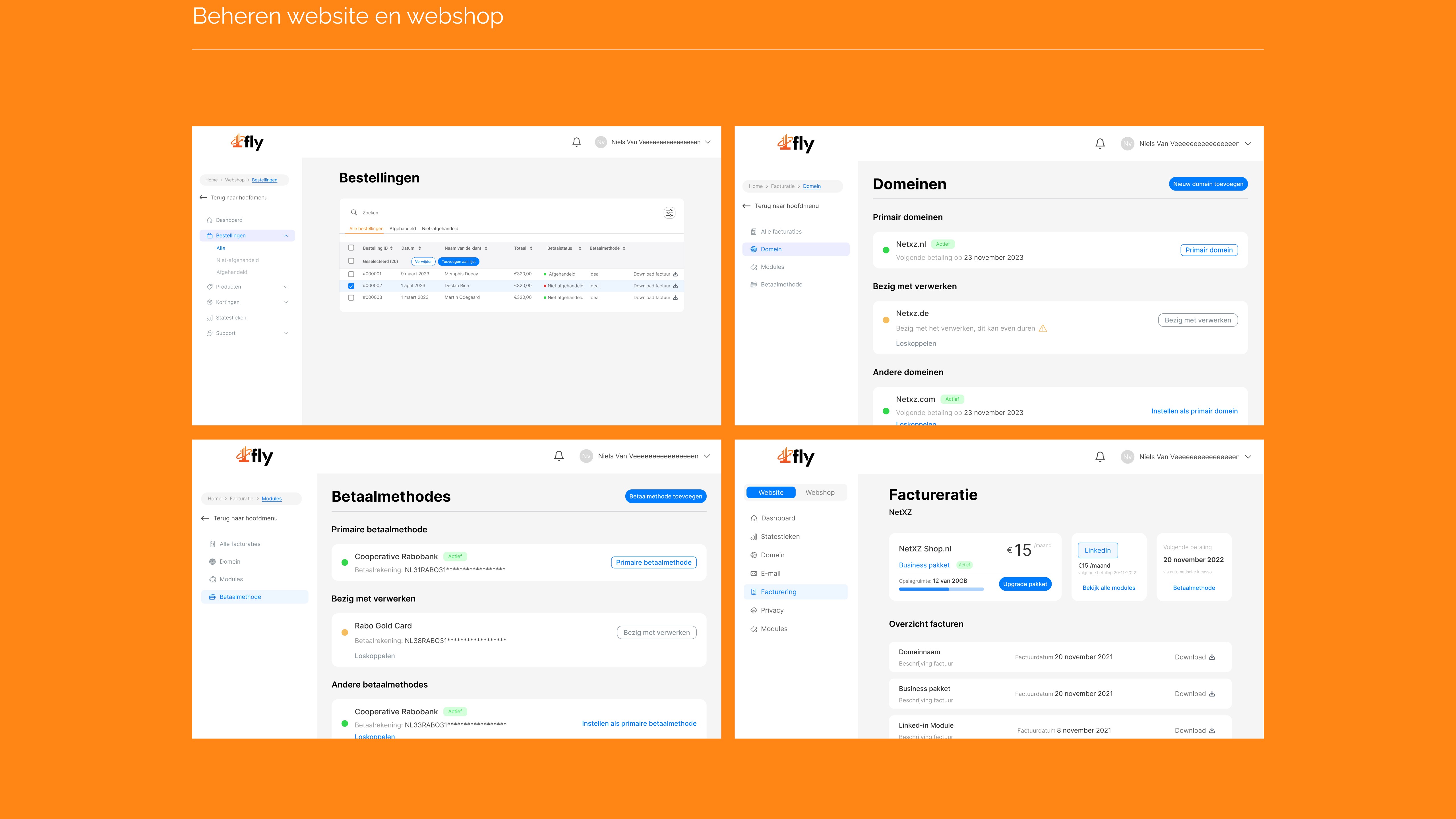 Voor 1Fly heb ik een website ontworpen die het voor iedereen makkelijk maakt om een eigen site te bouwen. Of je nu een ondernemer bent, een portfolio wilt delen of de lokale bakker bent, met 1Fly heb je geen technische kennis nodig om online te gaan. Het platform is simpel en overzichtelijk, zodat je snel aan de slag kunt.