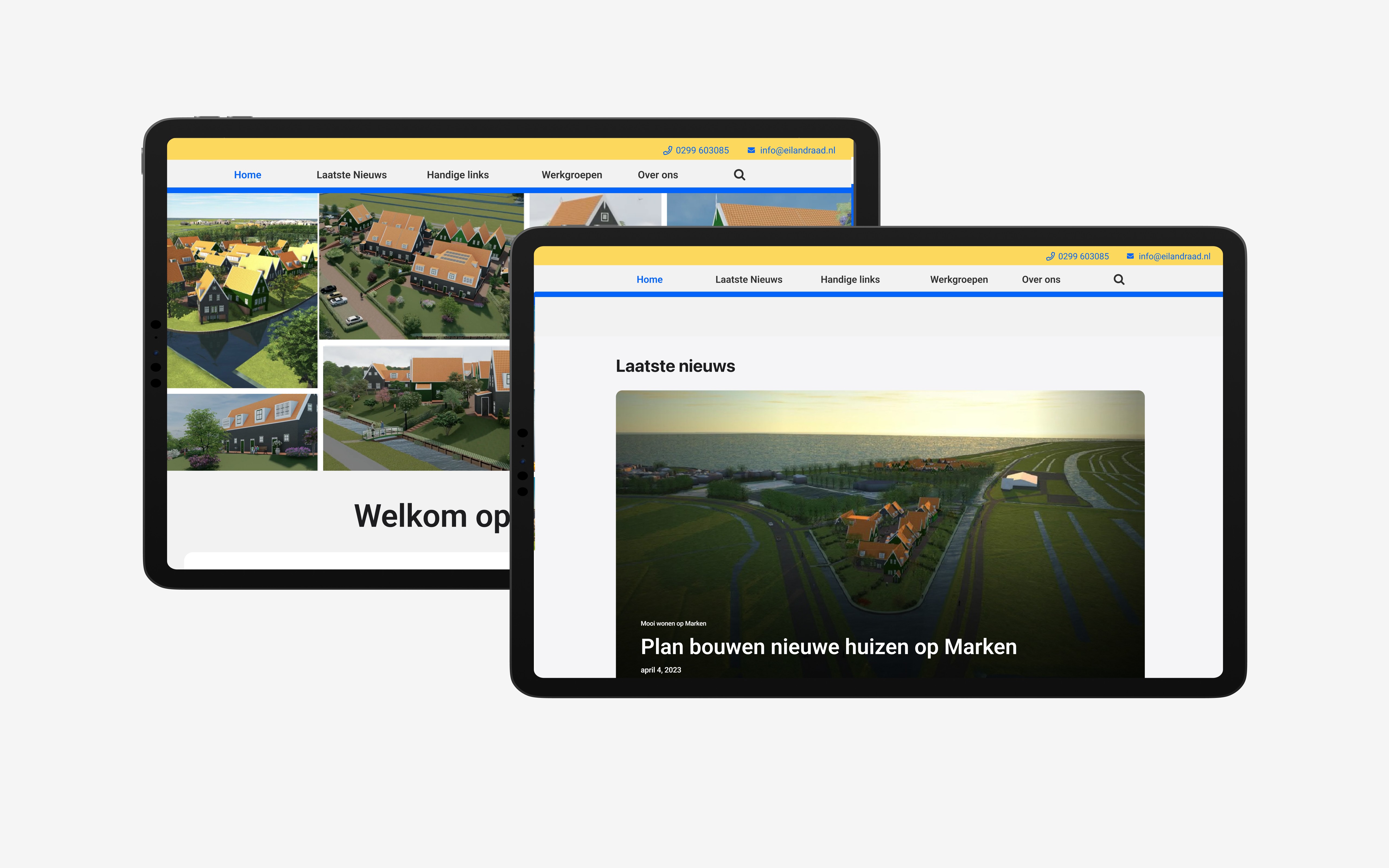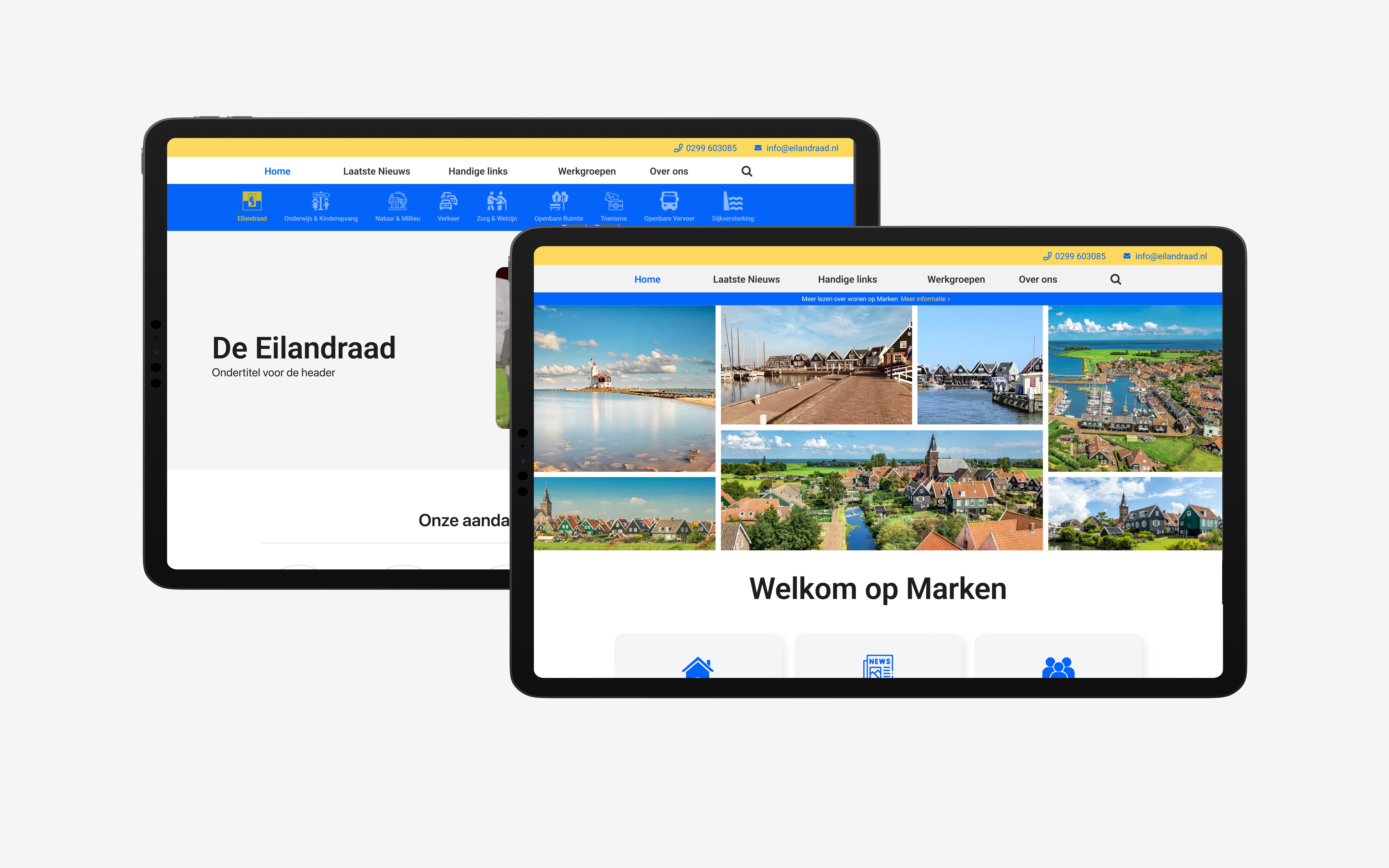 Ik werd benaderd om een nieuw ontwerp te maken voor de website van de Eilandraad Marken. De oude site was onoverzichtelijk, verouderd en niet mobielvriendelijk, wat zorgde voor een frustrerende gebruikerservaring.