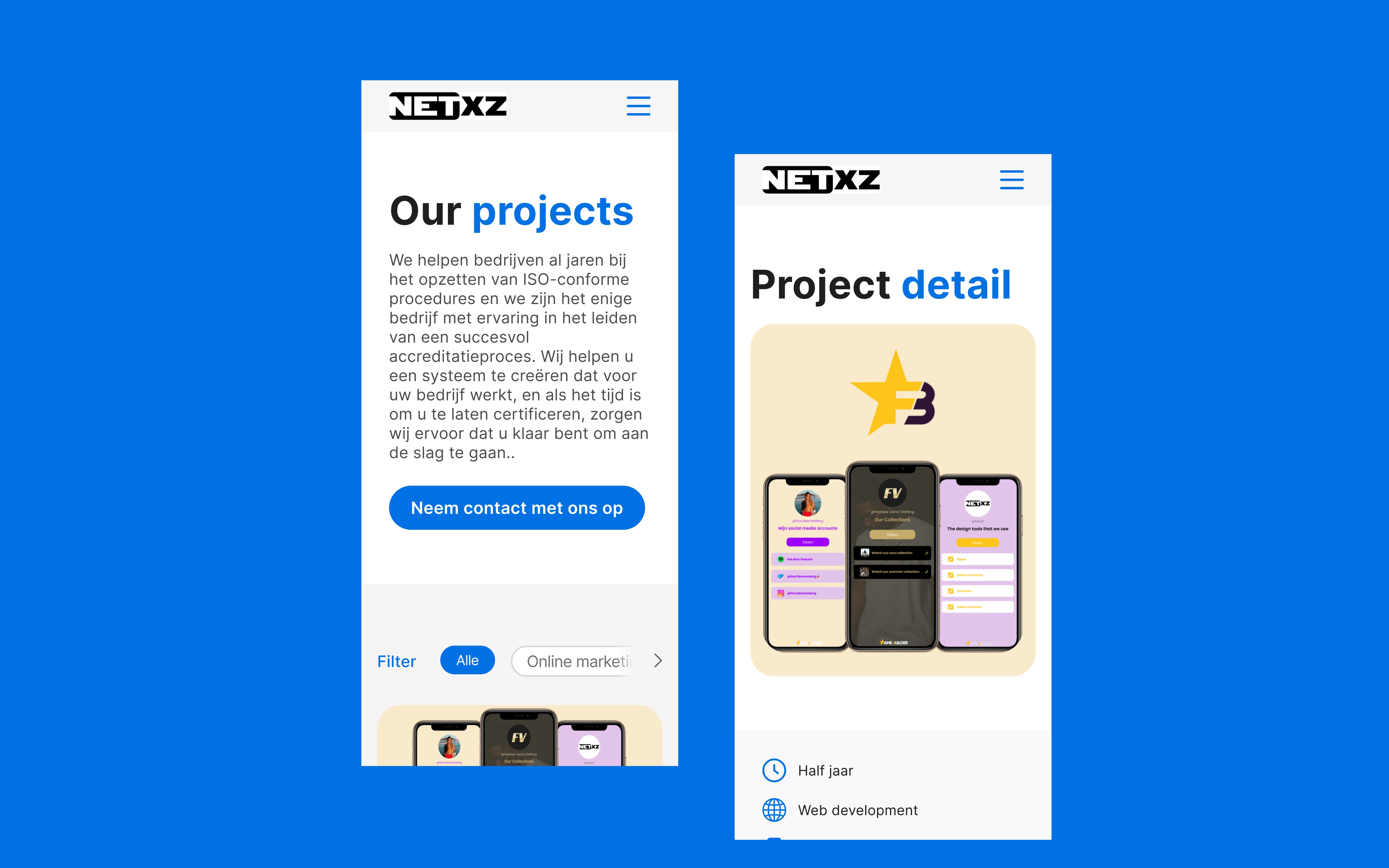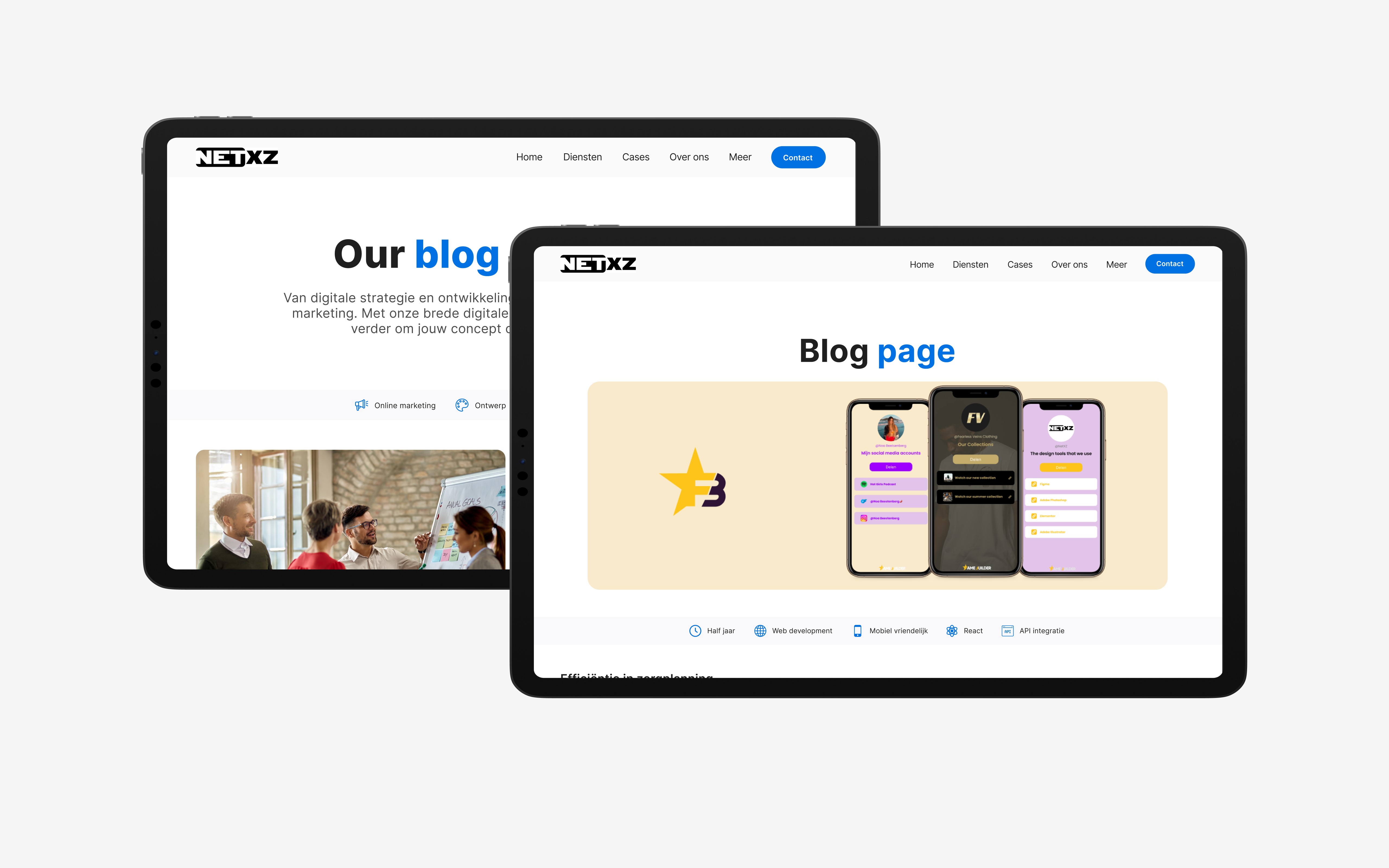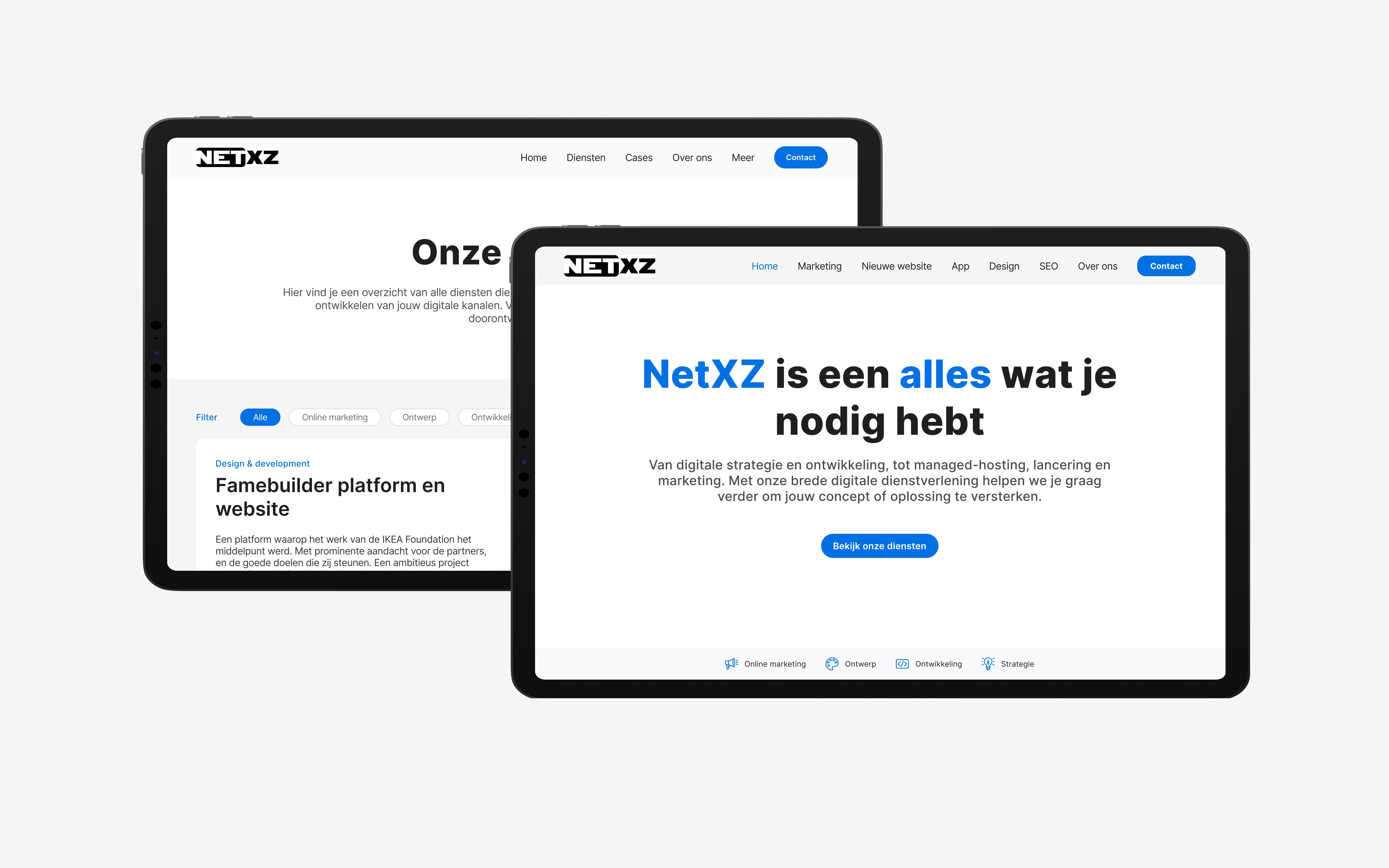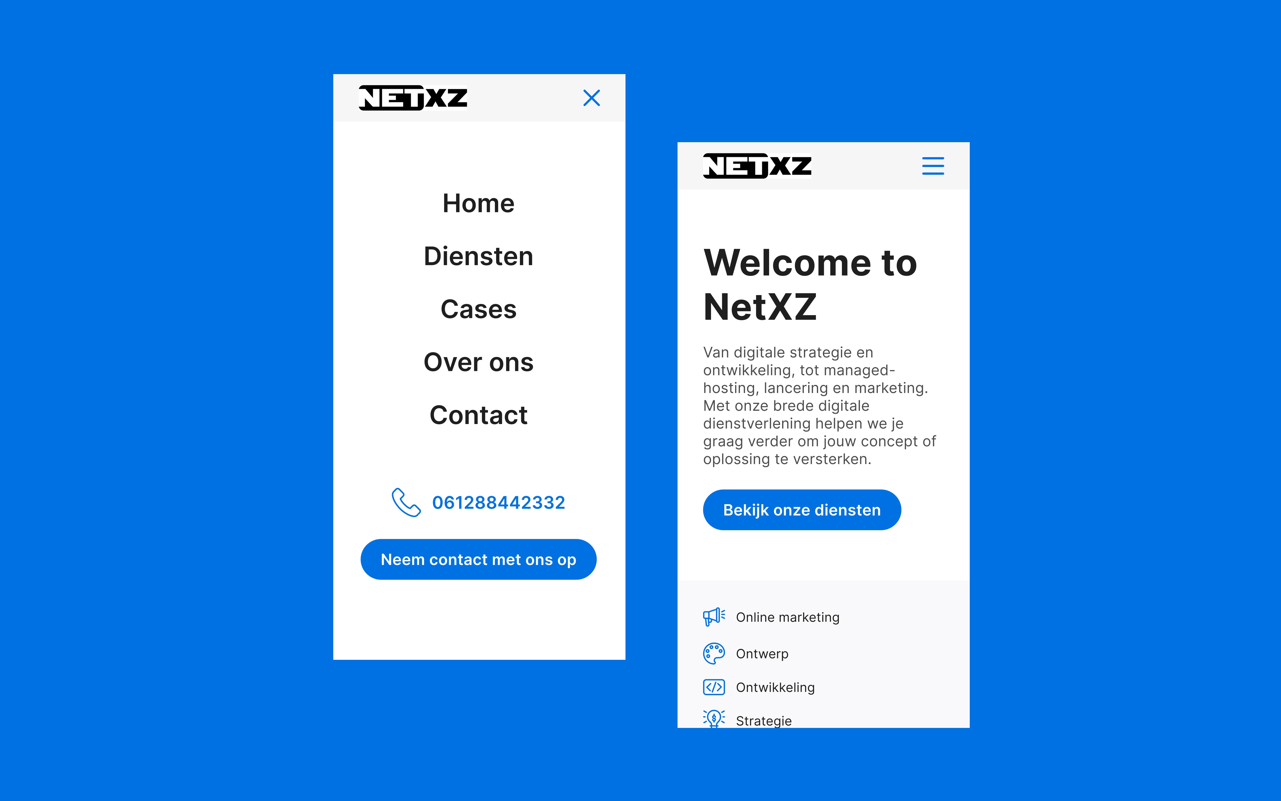 Ik kreeg de opdracht om een website voor NetXZ te ontwerpen. De website moest het bedrijf en hun diensten duidelijk presenteren in webdesign, social media strategieën en bedrijfsoptimalisatie.